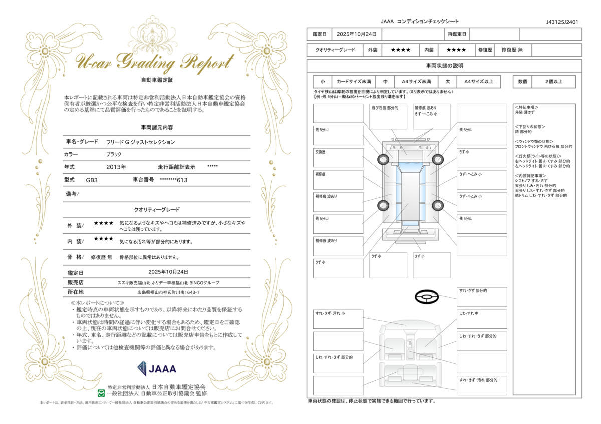 車両保証(フリード G ジャストセレクション:スズキ販売福山北 ホリデー車検福山北 (株)備後鈑金 BINGOグループ)