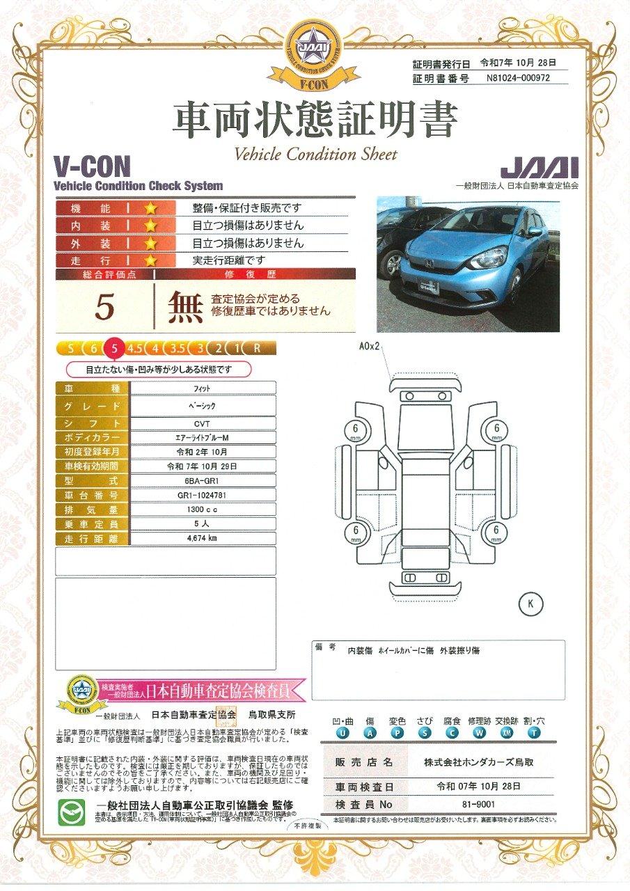 車両保証(フィット ベーシック:(株)ホンダカーズ鳥取 U-Select米子)