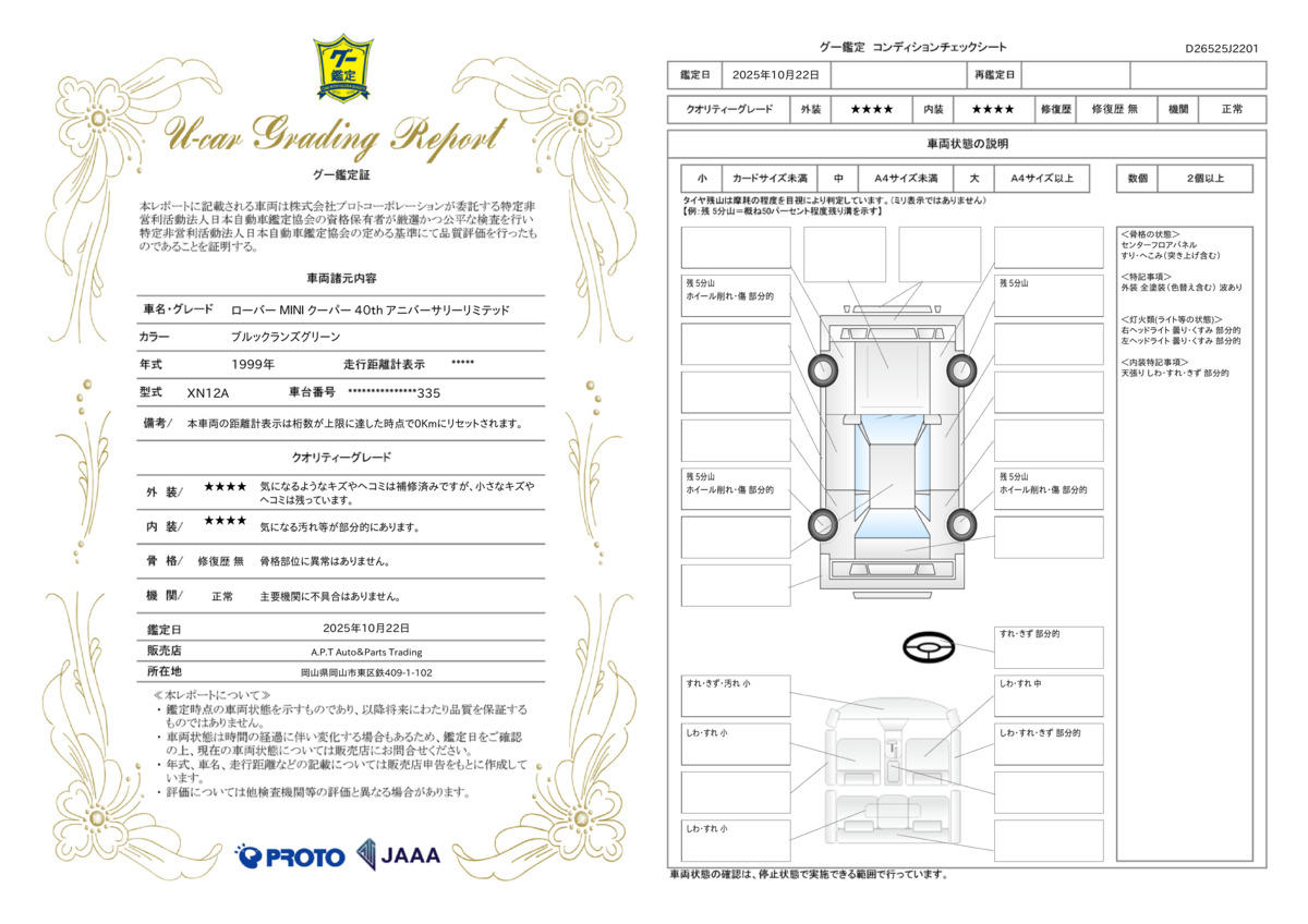 車両保証(MINI クーパー 40th アニバーサリーリミテッド:A.P.T Auto&Parts Trading)