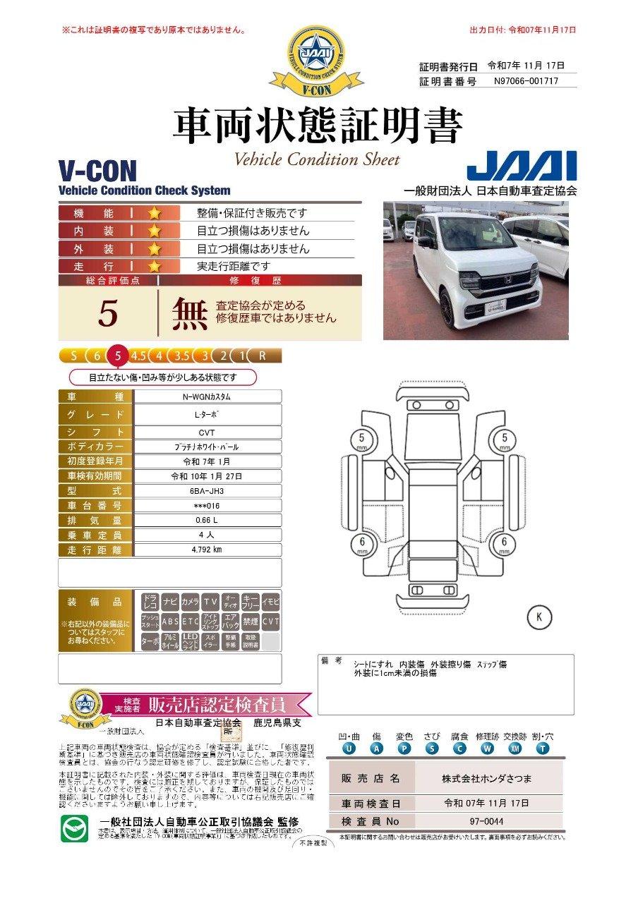 車両状態(N-WGNカスタム L・ターボ)