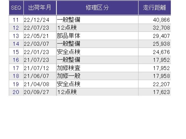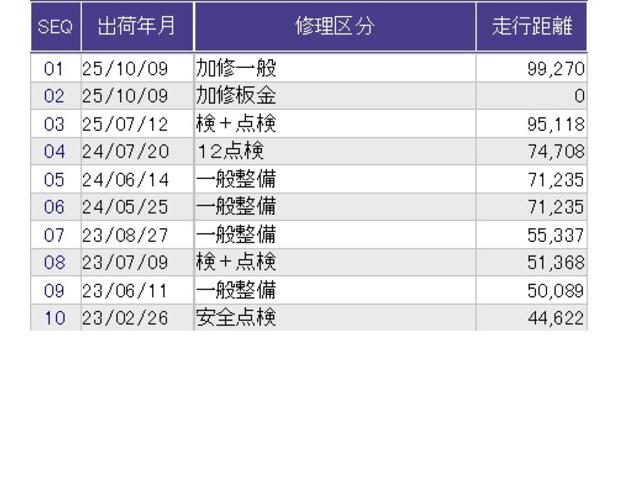 走行距離 | 9.9万km | 修復歴 | 無 |