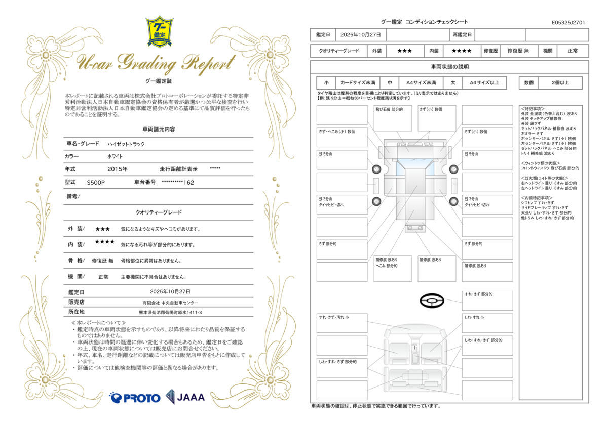 | 車両状態評価書 | ※クリックすると開きます![]() |
