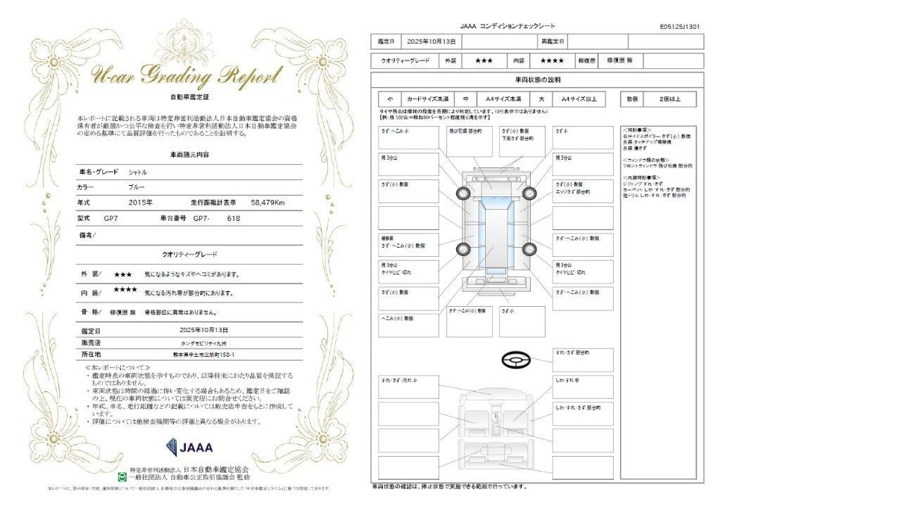 | 車両状態評価書 | ※クリックすると開きます![]() |