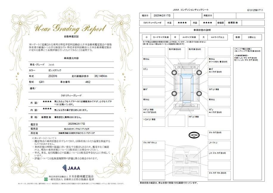 | 車両状態評価書 | ※クリックすると開きます![]() |