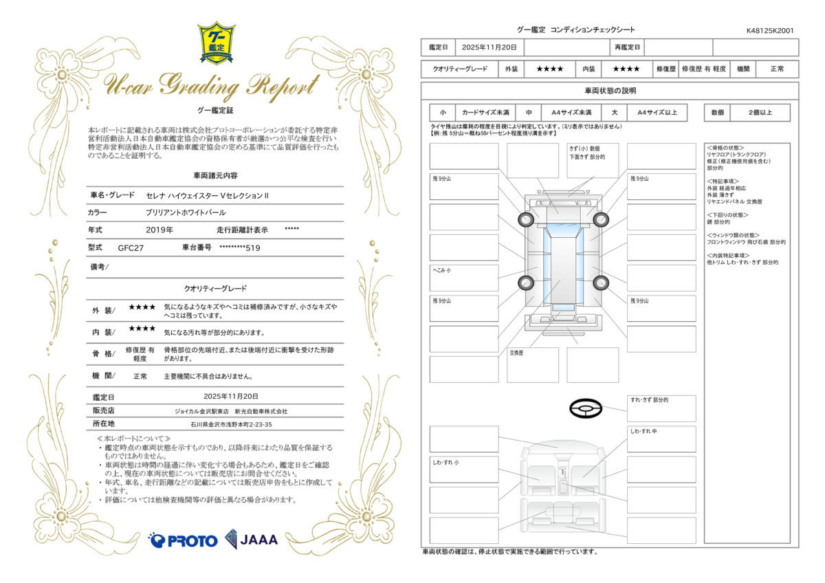 車両保証(セレナ ハイウェイスター VセレクションII:ジョイカル金沢駅東店 新光自動車(株))