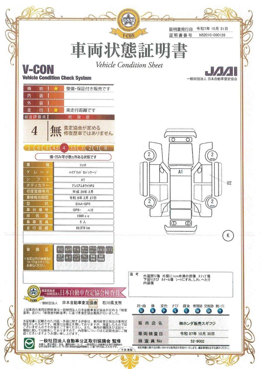車両保証(フィットハイブリッド Sパッケージ:Honda Cars 七尾中央)