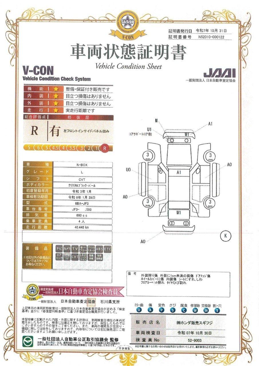 | 車両状態評価書 | ※クリックすると開きます![]() |