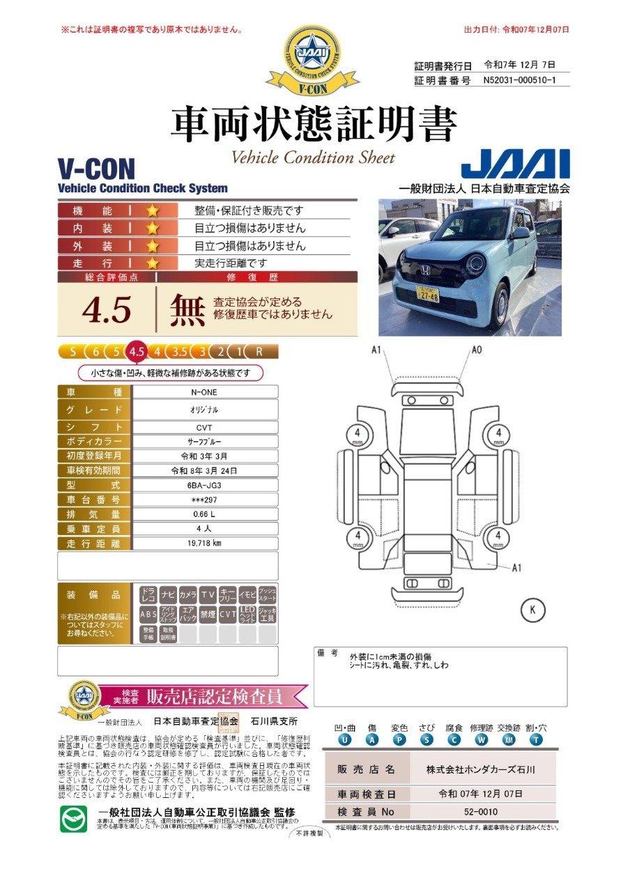 車両保証(N-ONE オリジナル:Honda Cars 石川 金沢古府店)