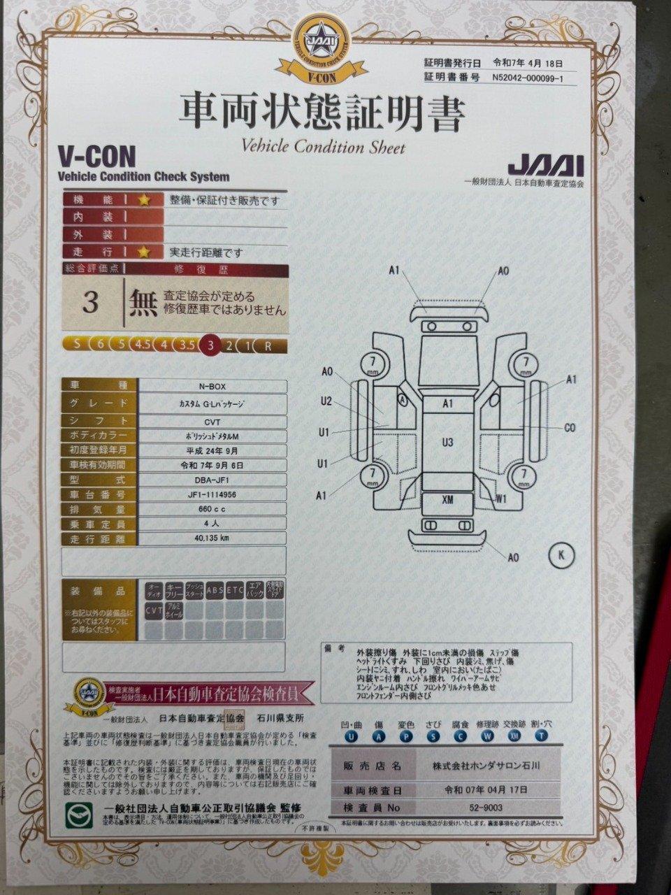 車両状態(N-BOXカスタム G・Lパッケージ)