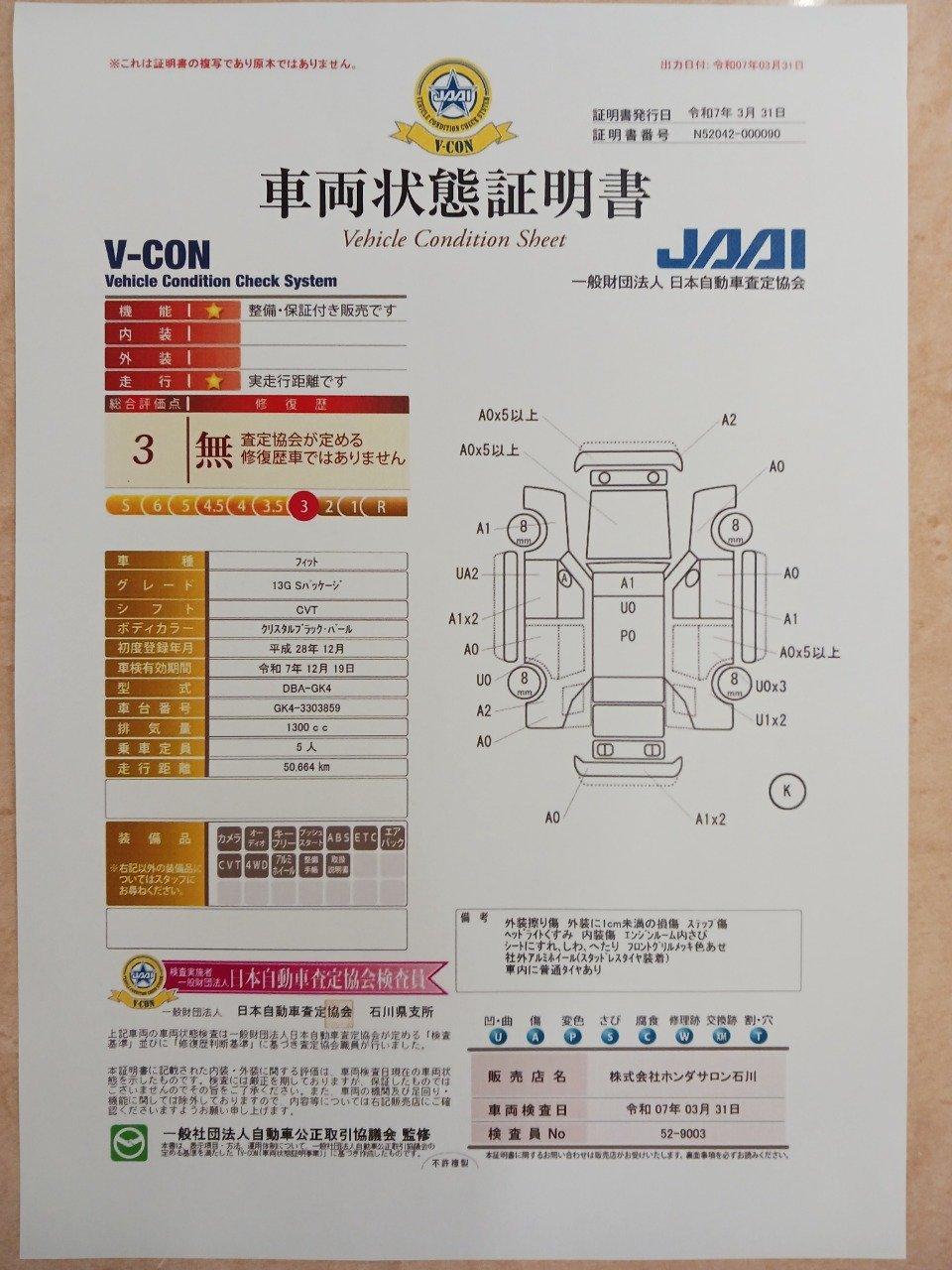 | 車両状態評価書 | ※クリックすると開きます![]() |