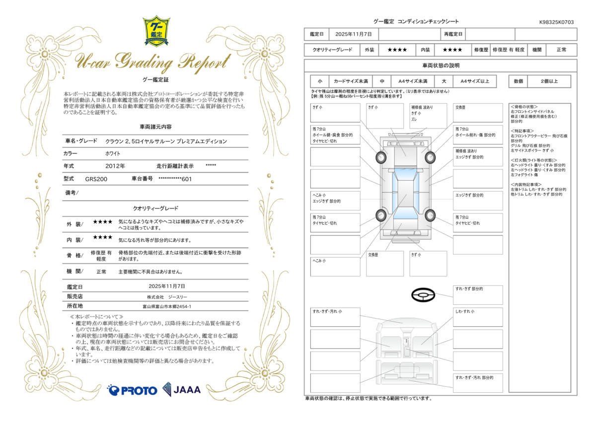 | 車両状態評価書 | ※クリックすると開きます![]() |