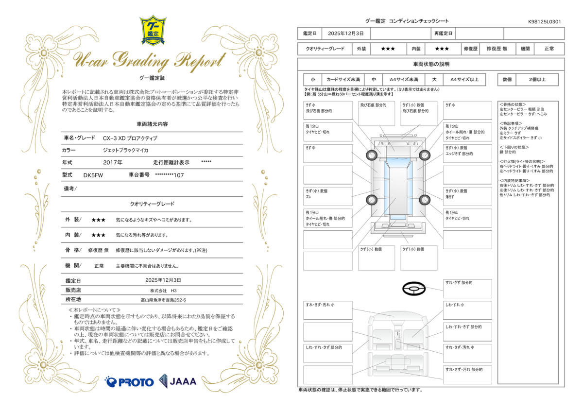 車両保証(CX-3 XD プロアクティブ:株式会社 H3 スーパー乗るだけセット魚津店)