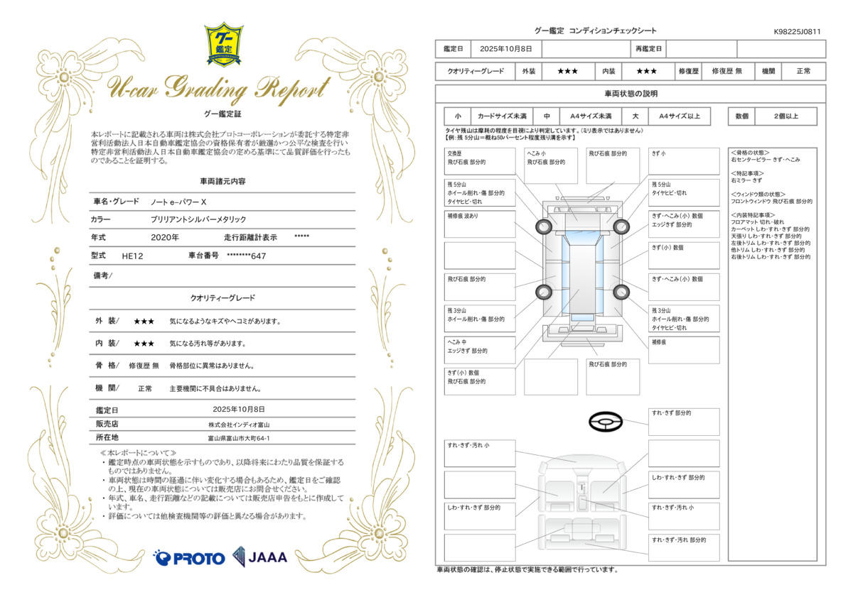 | 車両状態評価書 | ※クリックすると開きます![]() |