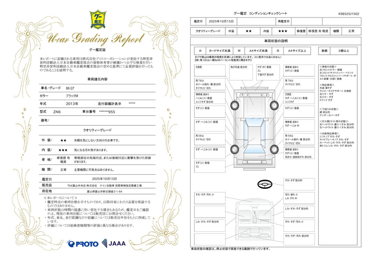車両保証(86 GT:TAX富山中央店 株式会社ナイン自動車 民間車検指定整備工場)