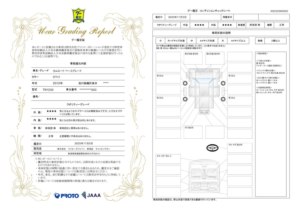 | 車両状態評価書 | ※クリックすると開きます![]() |