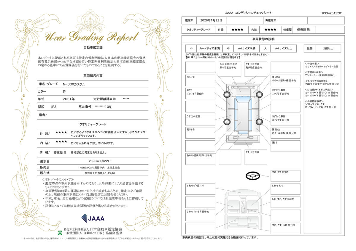 | 車両状態評価書 | ※クリックすると開きます![]() |