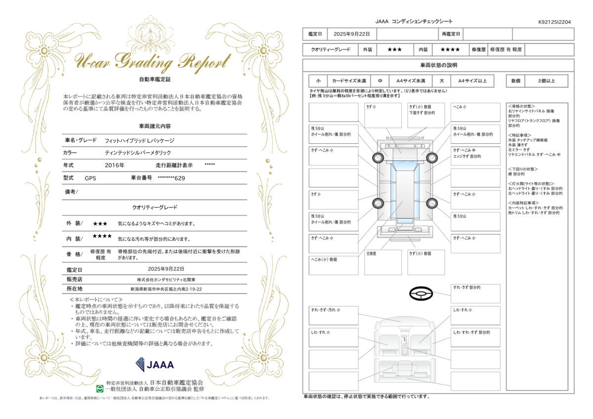 車両状態評価書 | ※クリックすると開きます![]() |