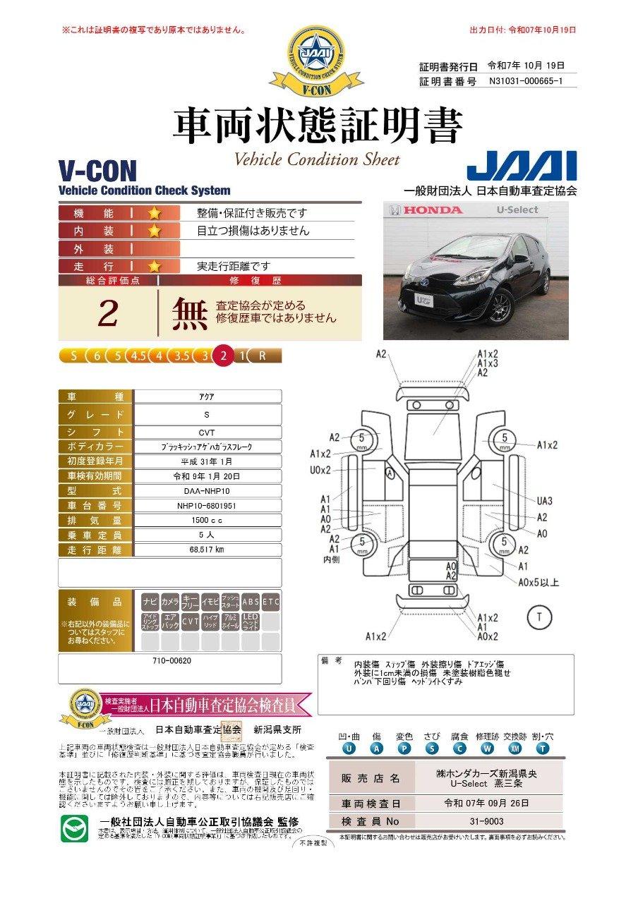 車両保証(アクア S:U-Select燕三条 株式会社ホンダカーズ新潟県央)