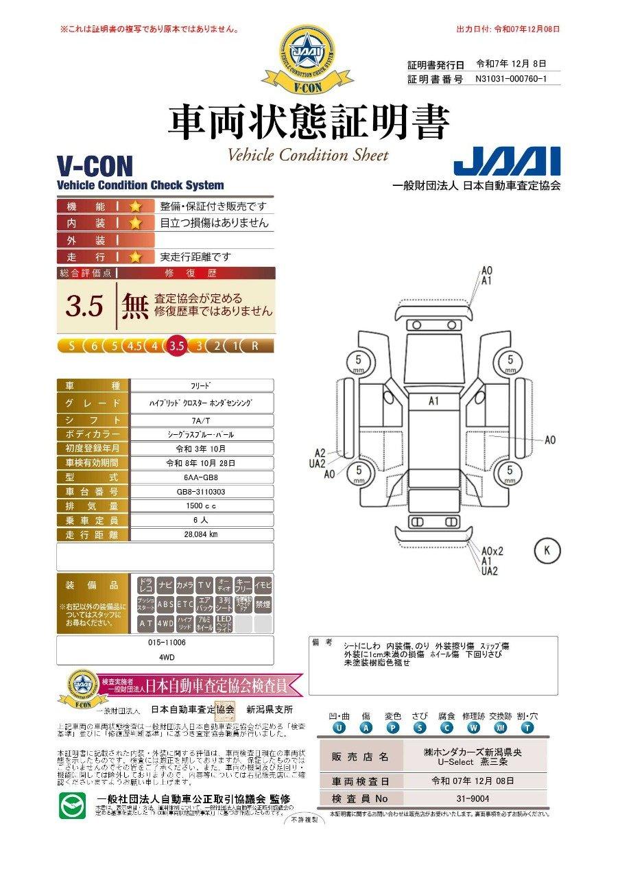 車両保証(フリードハイブリッド ハイブリッド・クロスターホンダセンシング:U-Select燕三条 株式会社ホンダカーズ新潟県央)