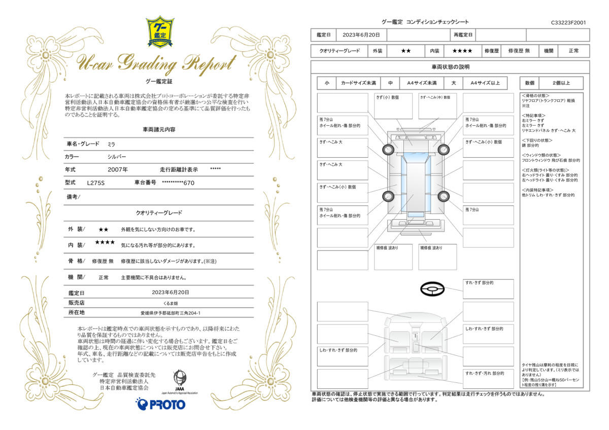 | 車両状態評価書 | ※クリックすると開きます![]() |