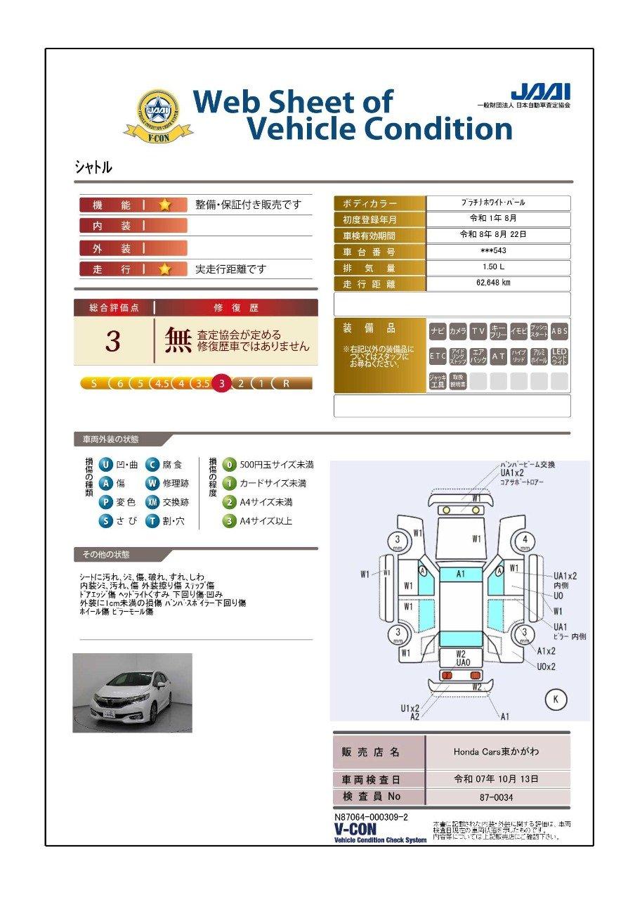 車両状態(シャトル ハイブリッドX ホンダセンシング)