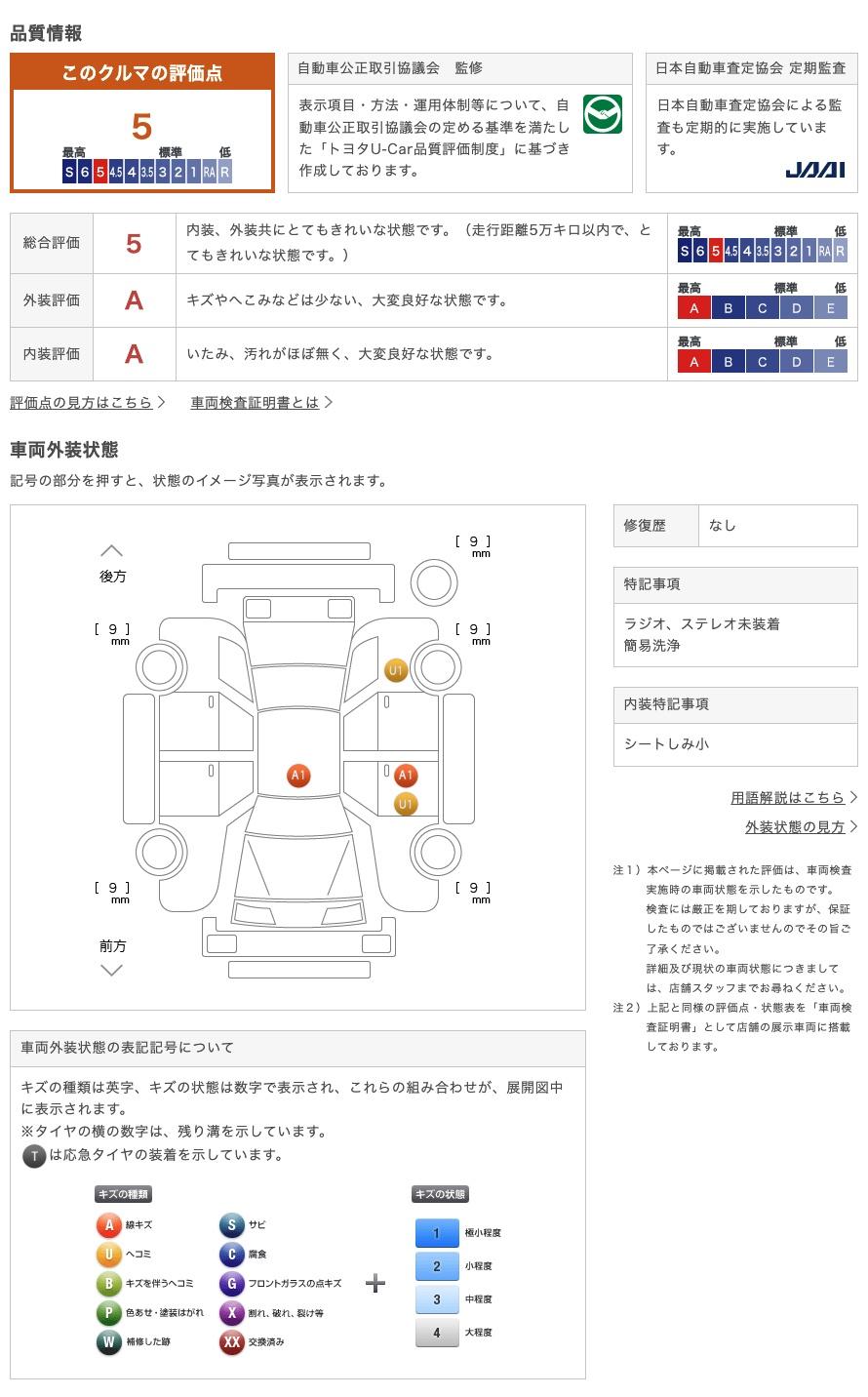 状態を確認する| 修復歴 | 無 | 登録済未使用車 | × |