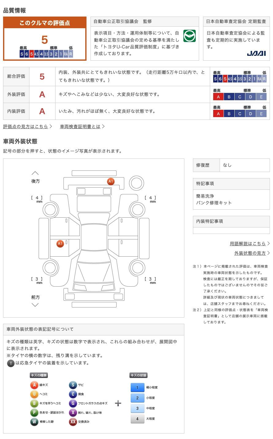 保証内容 | トヨタロングラン保証付き!12ヶ月・走行無制限保証が付いております。保証内容については、販売店にてお尋ね下さいませ。 | ||