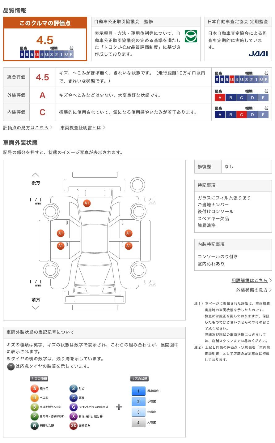 状態を確認する| 修復歴 | 無 | 登録済未使用車 | × |