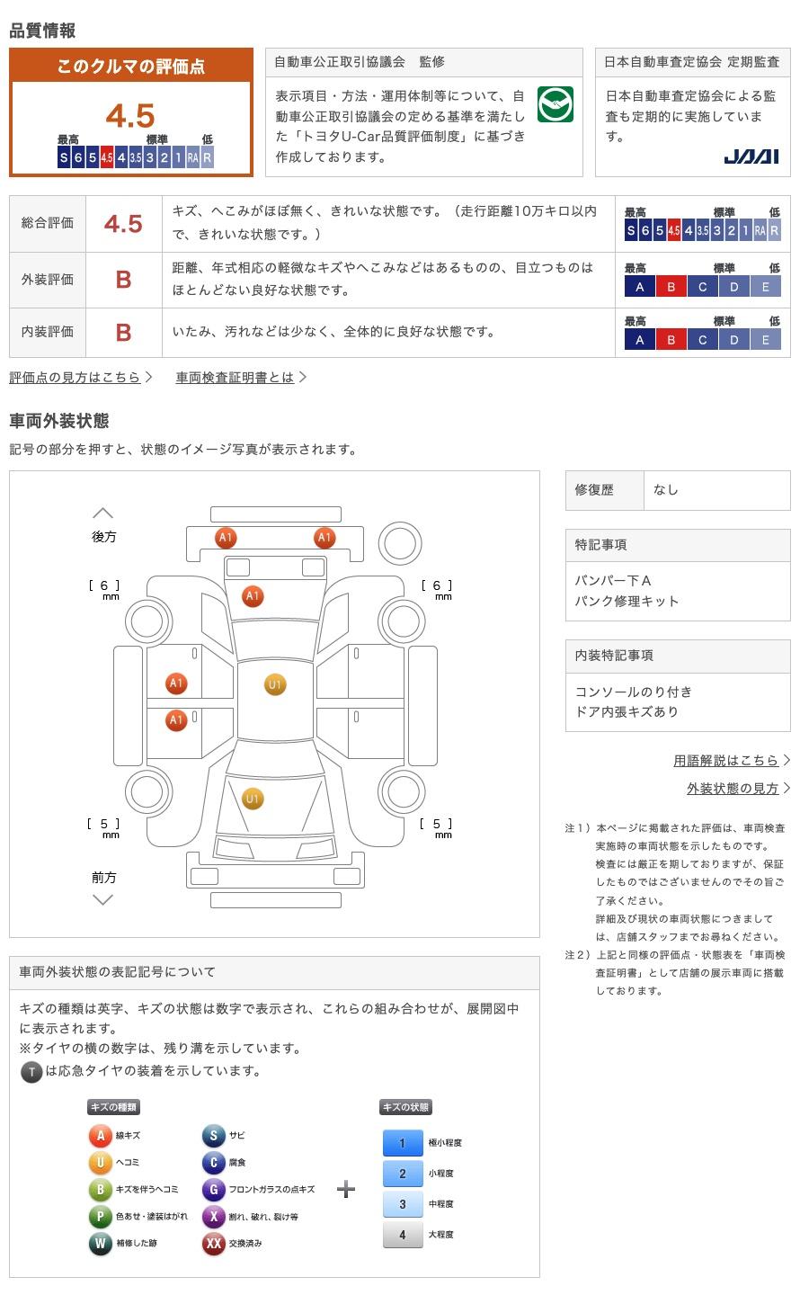 保証内容 | トヨタロングラン保証付き!12ヶ月・走行無制限保証が付いております。保証内容については、販売店にてお尋ね下さいませ。 | ||