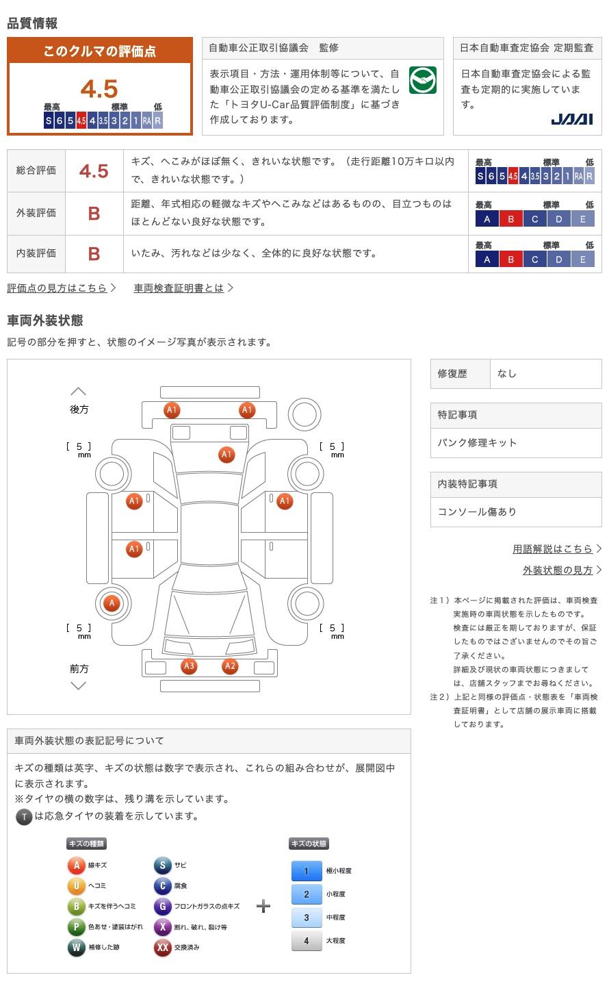 保証内容 | トヨタロングラン保証付き!12ヶ月・走行無制限保証が付いております。保証内容については、販売店にてお尋ね下さいませ。 | ||