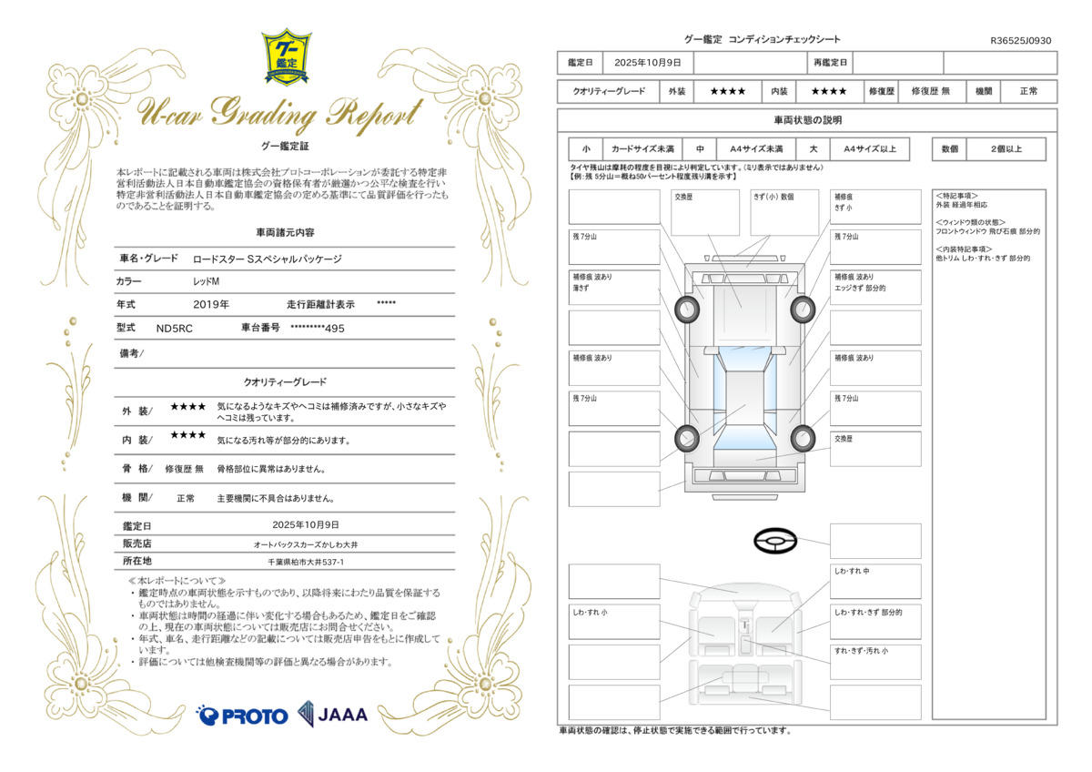 | 車両状態評価書 | ※クリックすると開きます![]() |