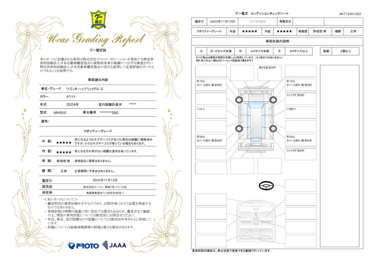 | 車両状態評価書 | ※クリックすると開きます![]() |