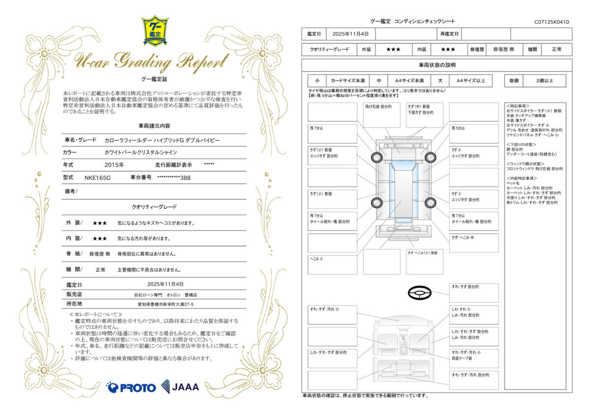 車両状態(カローラフィールダー ハイブリッドG ダブルバイビー)