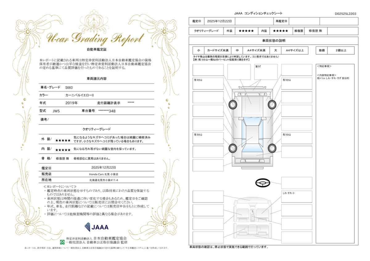 | 車両状態評価書 | ※クリックすると開きます![]() |