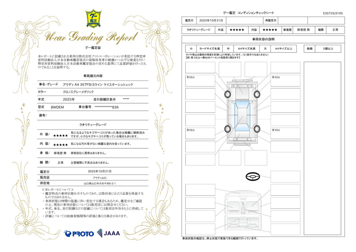 車両状態(A4 35TFSI Sライン マイスターシュトュック)