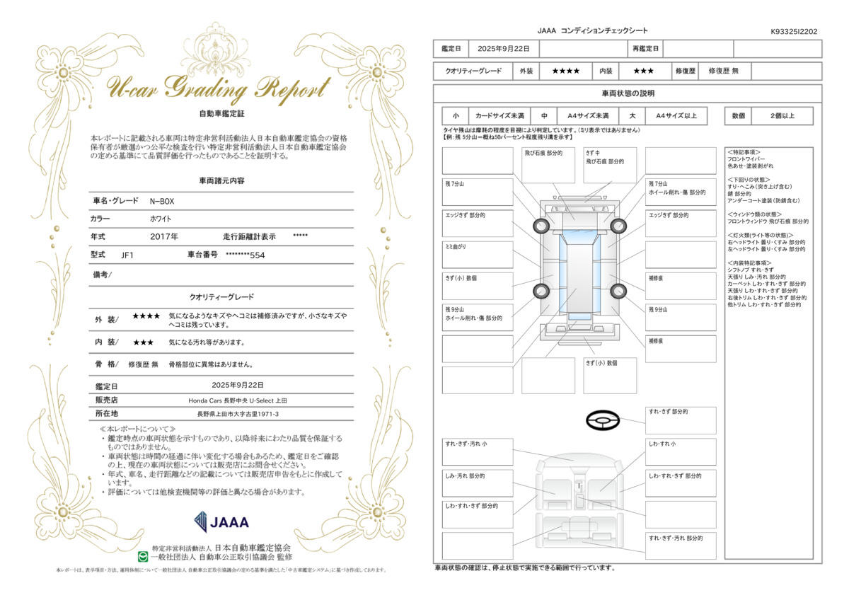 車両状態評価書 | ※クリックすると開きます![]() |