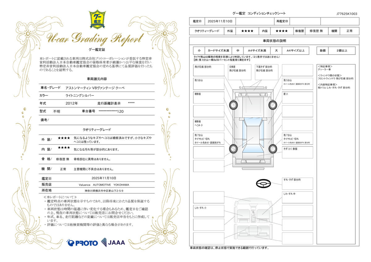 車両保証(V8ヴァンテージ クーペ:Valuence AUTOMOTIVE YOKOHAMA)