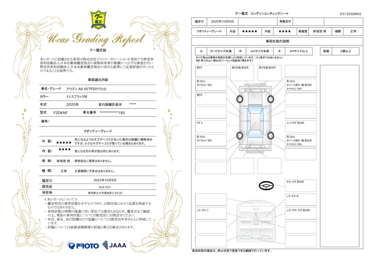 | 車両状態評価書 | ※クリックすると開きます![]() |