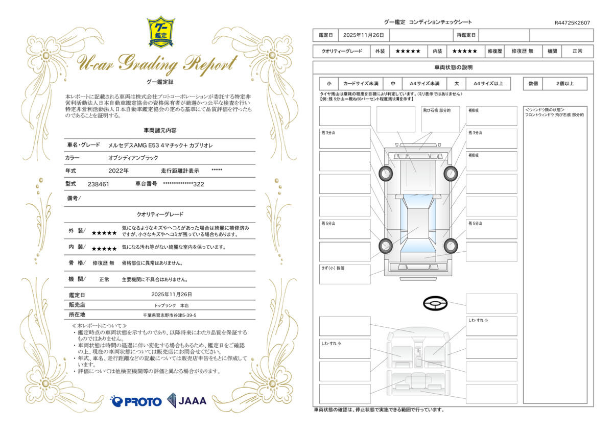 | 車両状態評価書 | ※クリックすると開きます![]() |