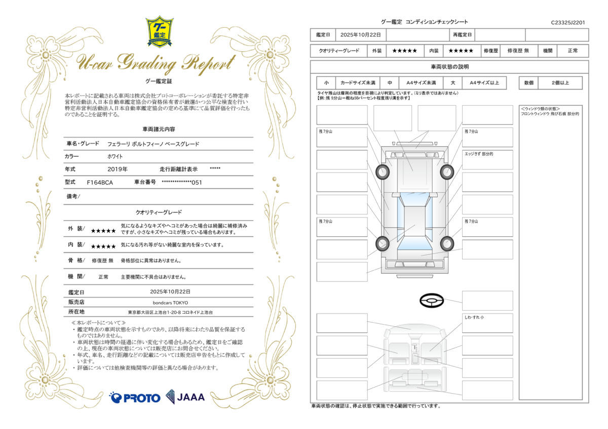 | 車両状態評価書 | ※クリックすると開きます![]() |