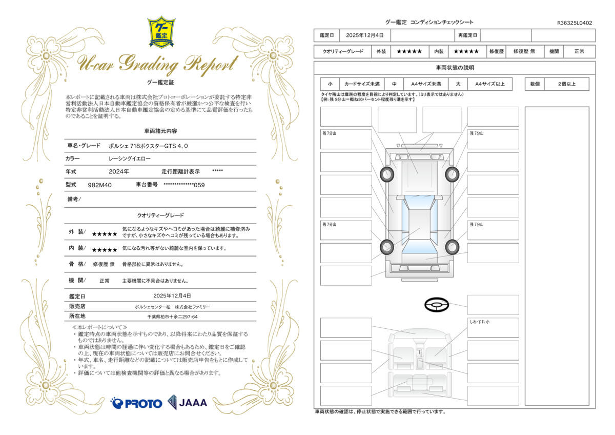 | 車両状態評価書 | ※クリックすると開きます![]() |