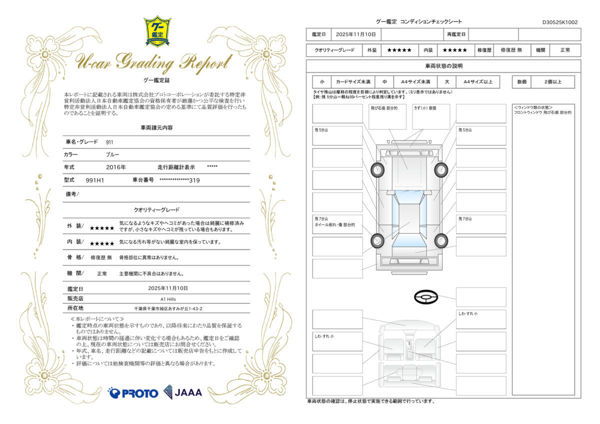 | 車両状態評価書 | ※クリックすると開きます![]() |