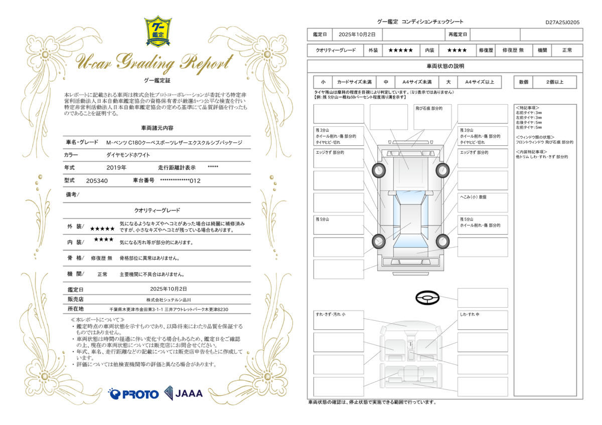 車両状態(Cクラス C180クーペスポーツレザーエクスクルシブパッケージ)