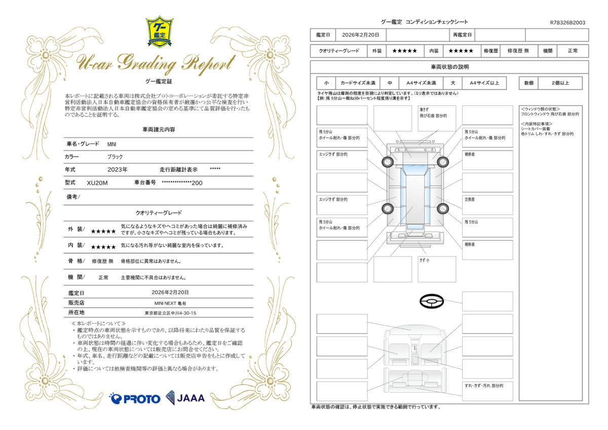 | 車両状態評価書 | ※クリックすると開きます![]() |