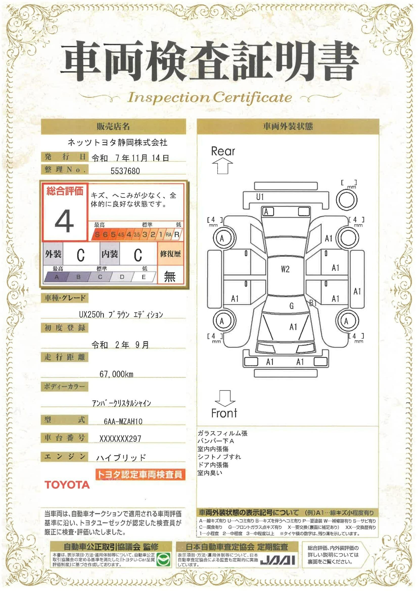 車両状態(UX UX250hブラウンエディション)