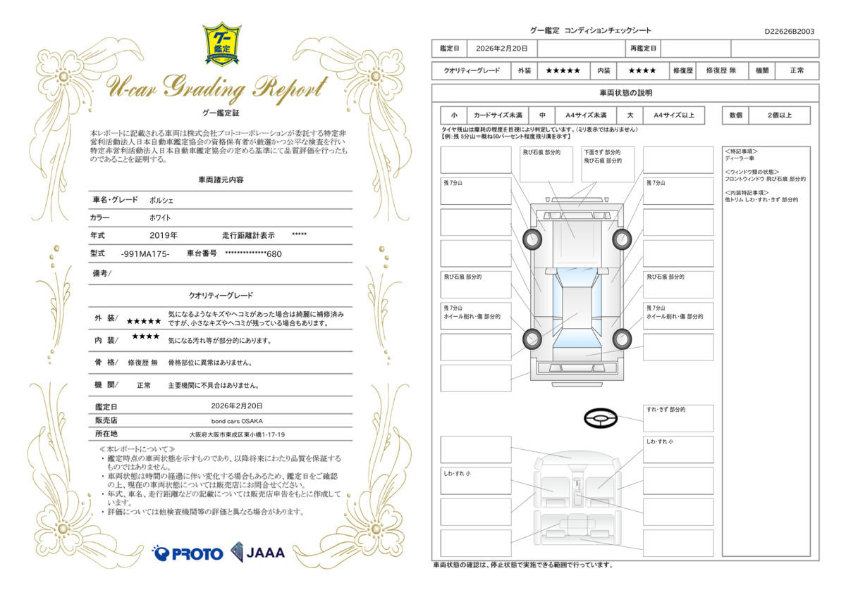 | 車両状態評価書 | ※クリックすると開きます![]() |