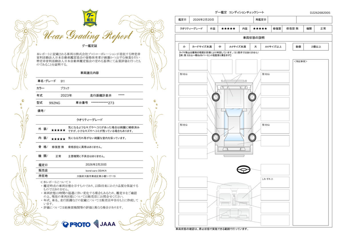 | 車両状態評価書 | ※クリックすると開きます![]() |