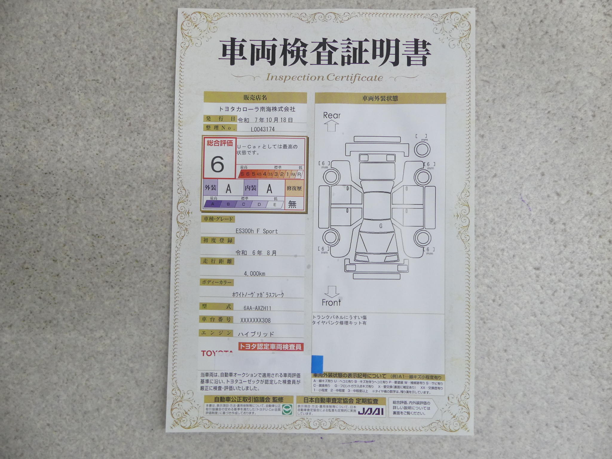 | 車両状態評価書 | ※クリックすると開きます![]() |