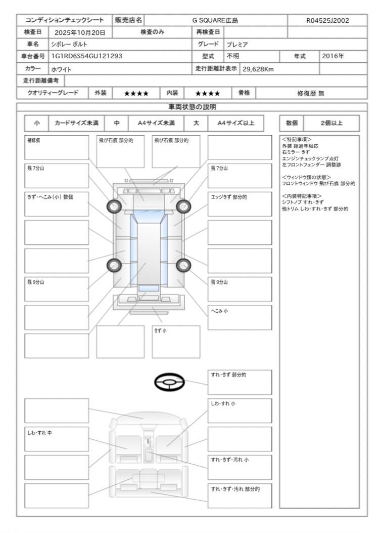 | 車両状態評価書 | ※クリックすると開きます![]() |