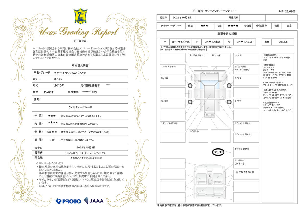 | 車両状態評価書 | ※クリックすると開きます![]() |